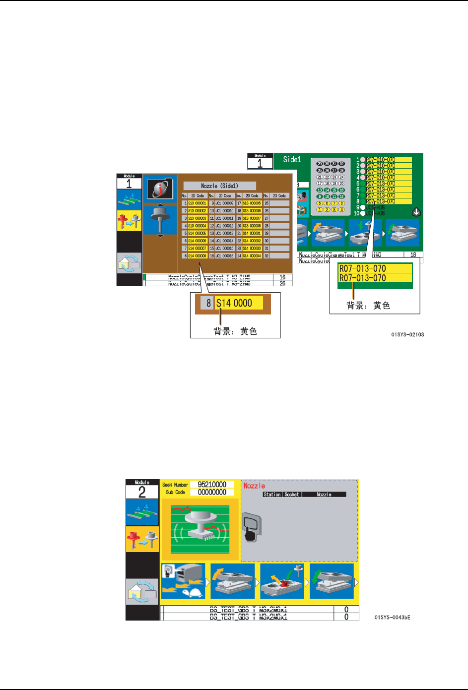 备注 )在手动模式的信息指令及换线时的安装向导中,被切换的吸嘴的代码或别名以黄色的