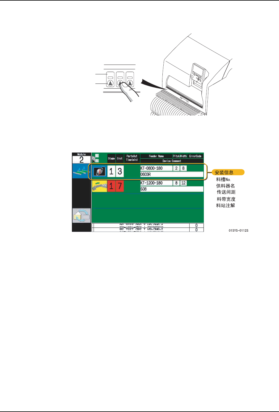 供料器安装后,当按下正面门上的安装按钮后,在向导画面上就会显示安装结束的料站信
