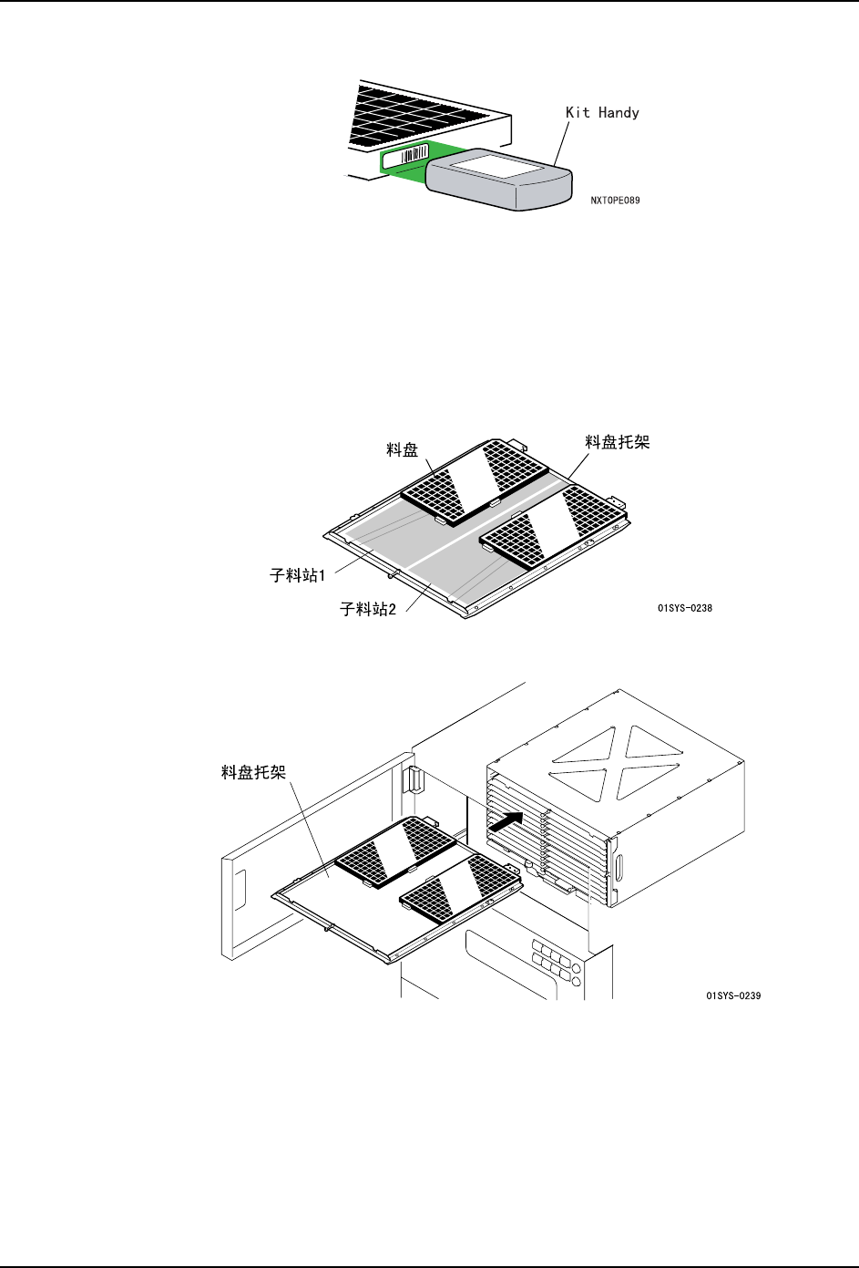 注意 )在将料盘托架安装到料盘箱内时,在不产生冲击下将料盘托架放入最里面。