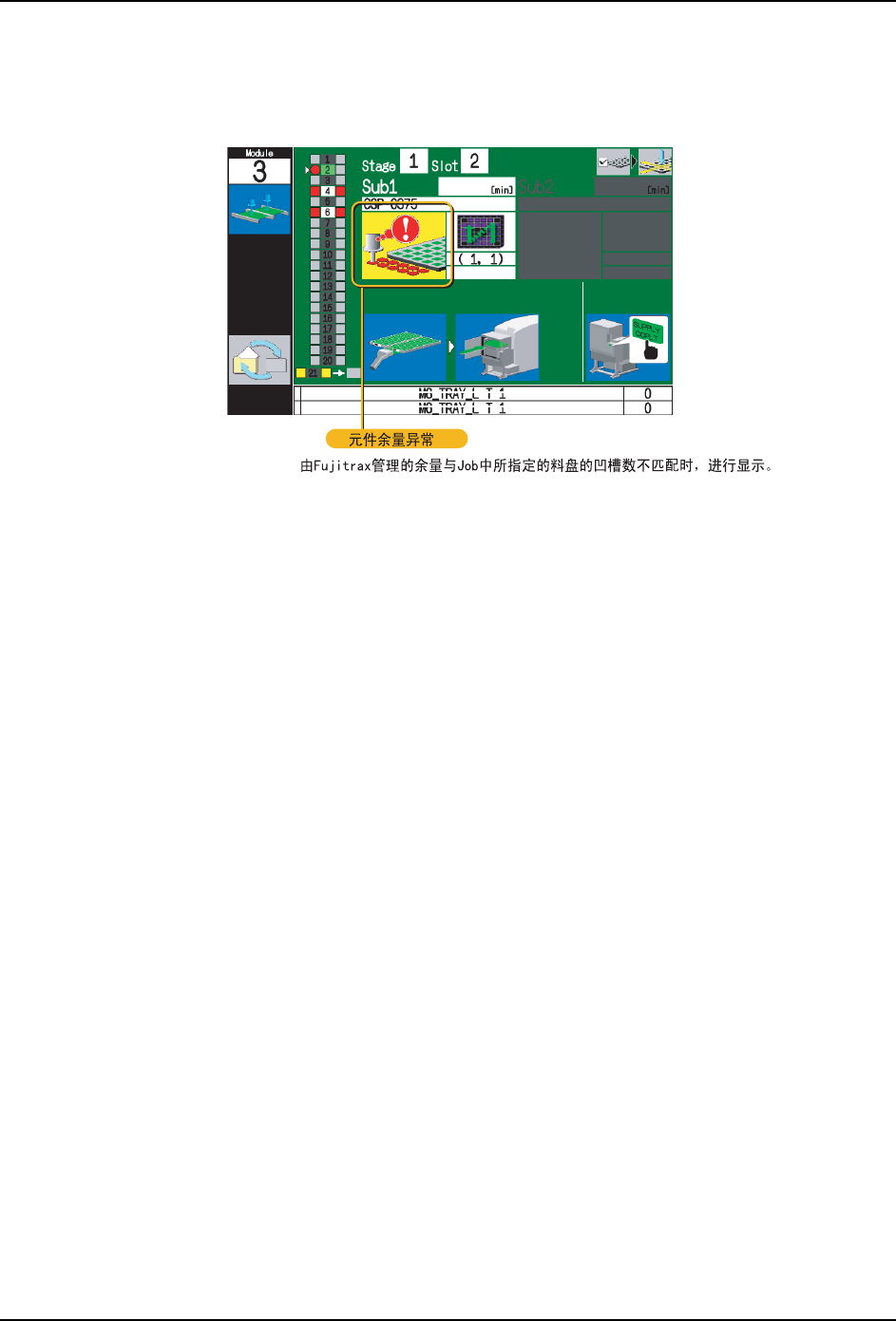 QD027-24 5. 换线 NXT 系统手册 217 5.6.9 料盘元件余量异常向导 在显示料盘的补充向导画面时 , 对被安装的料盘的元件余量有异常的料站进行料盘元件余量 异常向导。 请修正 Job 或者 DB 的元件余量的值,以便能够实现元 件余量与料盘凹槽数的匹配性。 01SYS-0120S