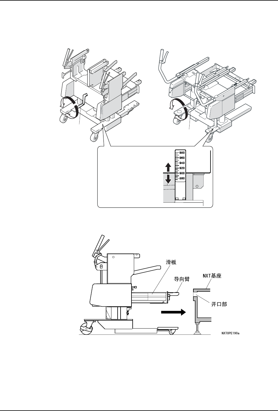 1. 准备 PCU。旋转手柄使 PCU 上下移动,请确认刻度使之对准机器的电路板搬运高度。
