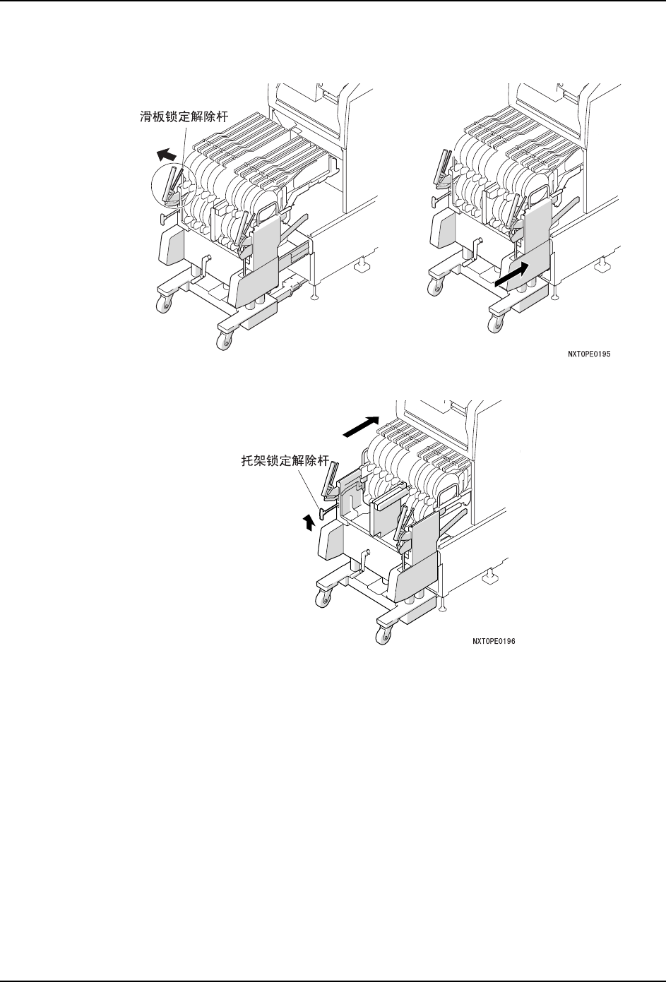 3. 请握住 PCU 滑板锁定解除杆,使 PCU 本体向前方滑动。