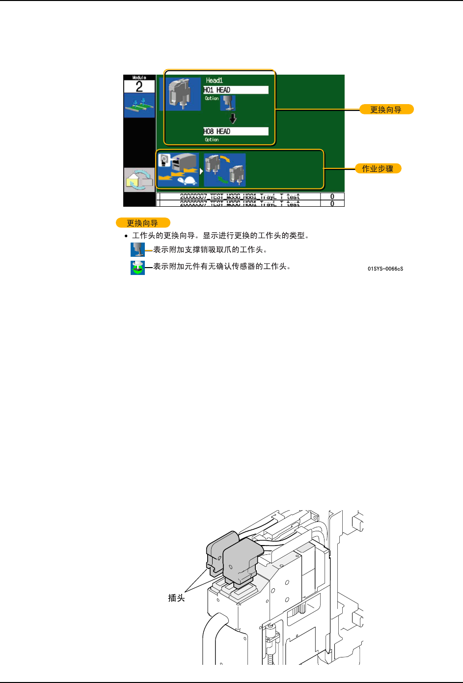 QD027-24 5. 换线 NXT 系统手册 247 5.11 工作头的更换 5.11.1 更换工作头的向导画面 备注 )根据 Job,必须更换贴装工作头的类型 (从 1 吸嘴工作头到 8 吸嘴工作头或从 8 吸嘴 工作头到单吸嘴工作头) 。通常在更换工作头种类的同时, 有必要进行吸嘴置放台的更 换。 5.11.2 工作头的卸下和安装 备注 )对于连接了料盘单元 -L 的模组,首先显示料盘单元 -L 卸下向导。请根据向导卸下料 盘单元…