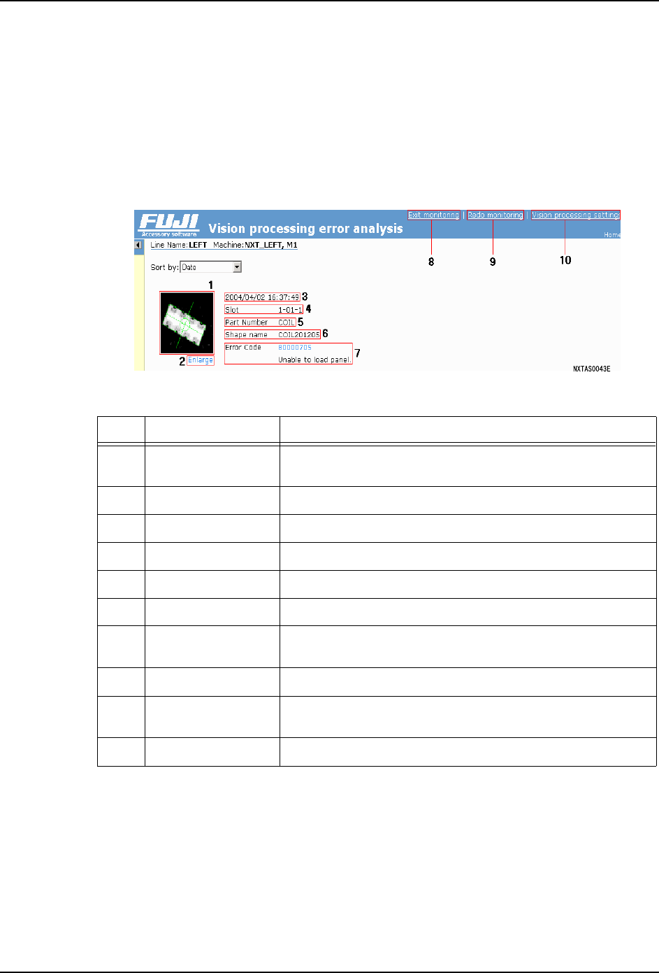 7.4.1 影像处理错误分析画面上显示的项目和含义