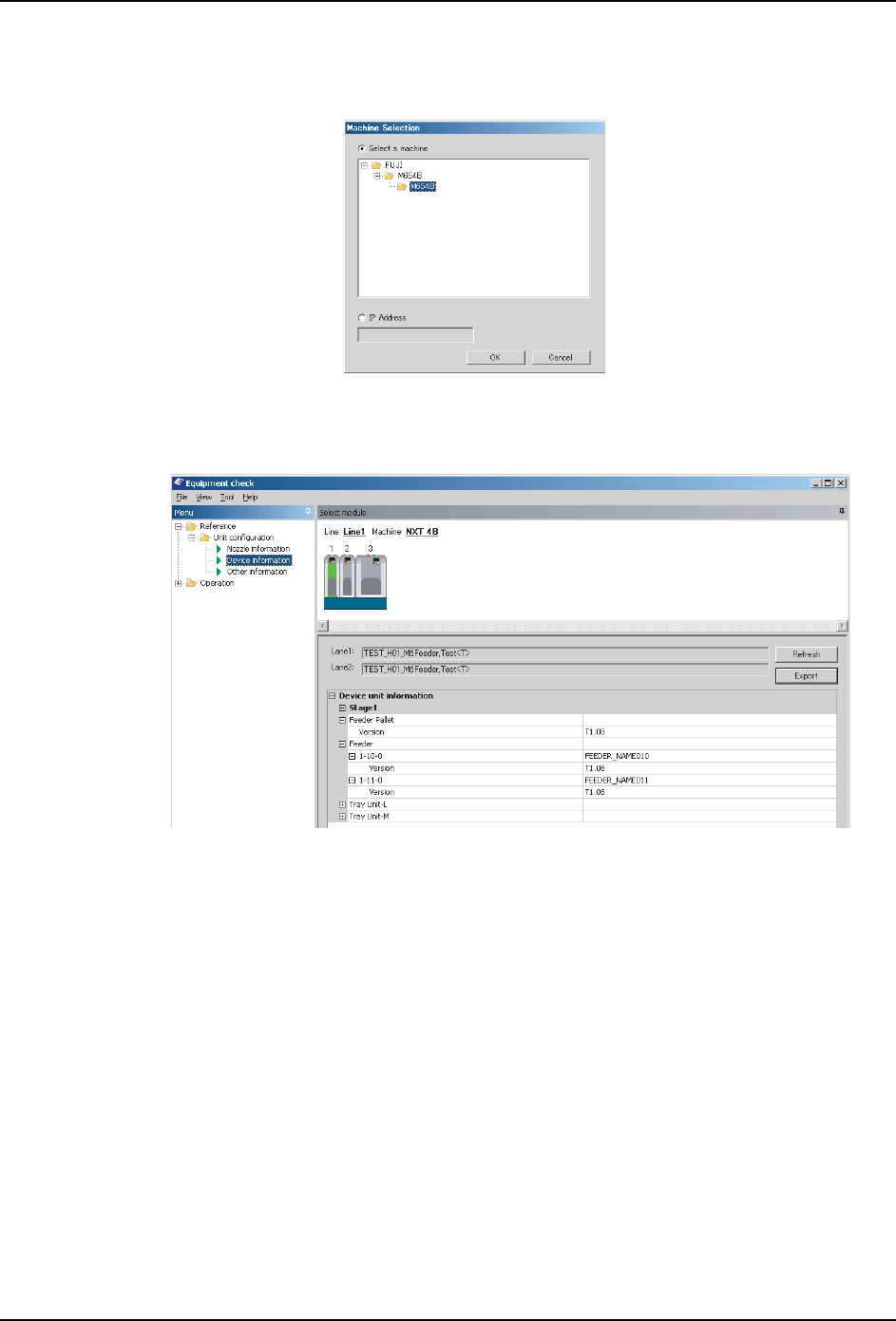 Equipment Check 能够在生产中参照被安装在模组中的吸嘴信息、各单元的序列号和固件版