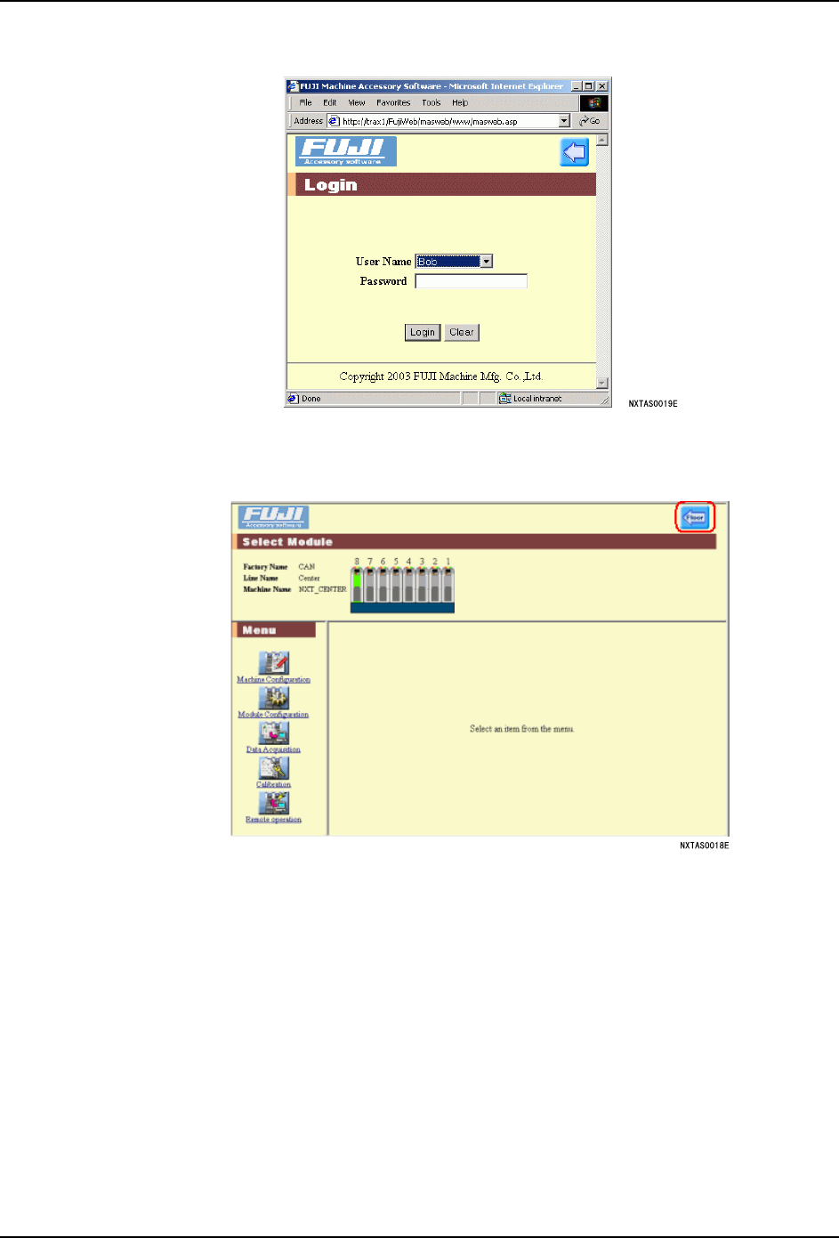 2. 输入地址 “http://***/fujiweb”,按下 ENTER。服务器 PC 被确定以及确认该服务器处