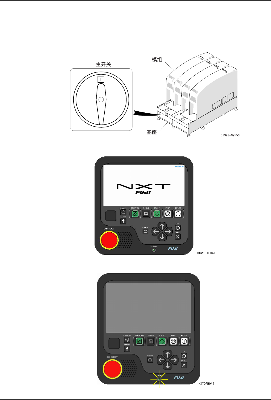 在 NXT 中,通过操作者的操作,电源的状态如下变化。