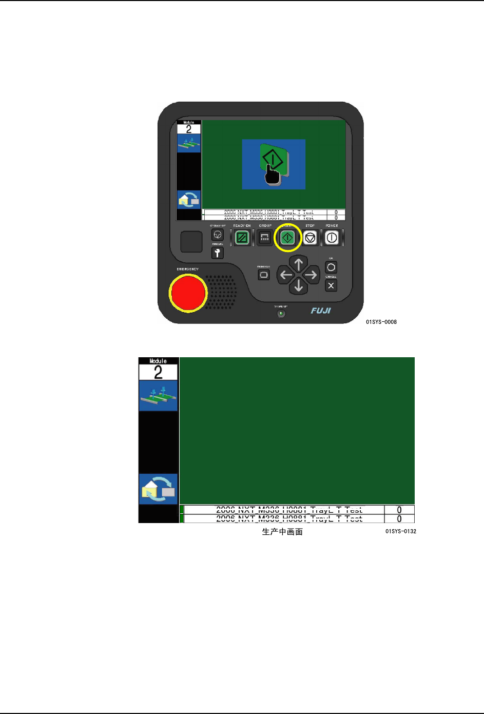 备注 )再次按下示意图显示为“STOP”模组的 STOP 按钮后,就会取消停止指令,进入通常的
