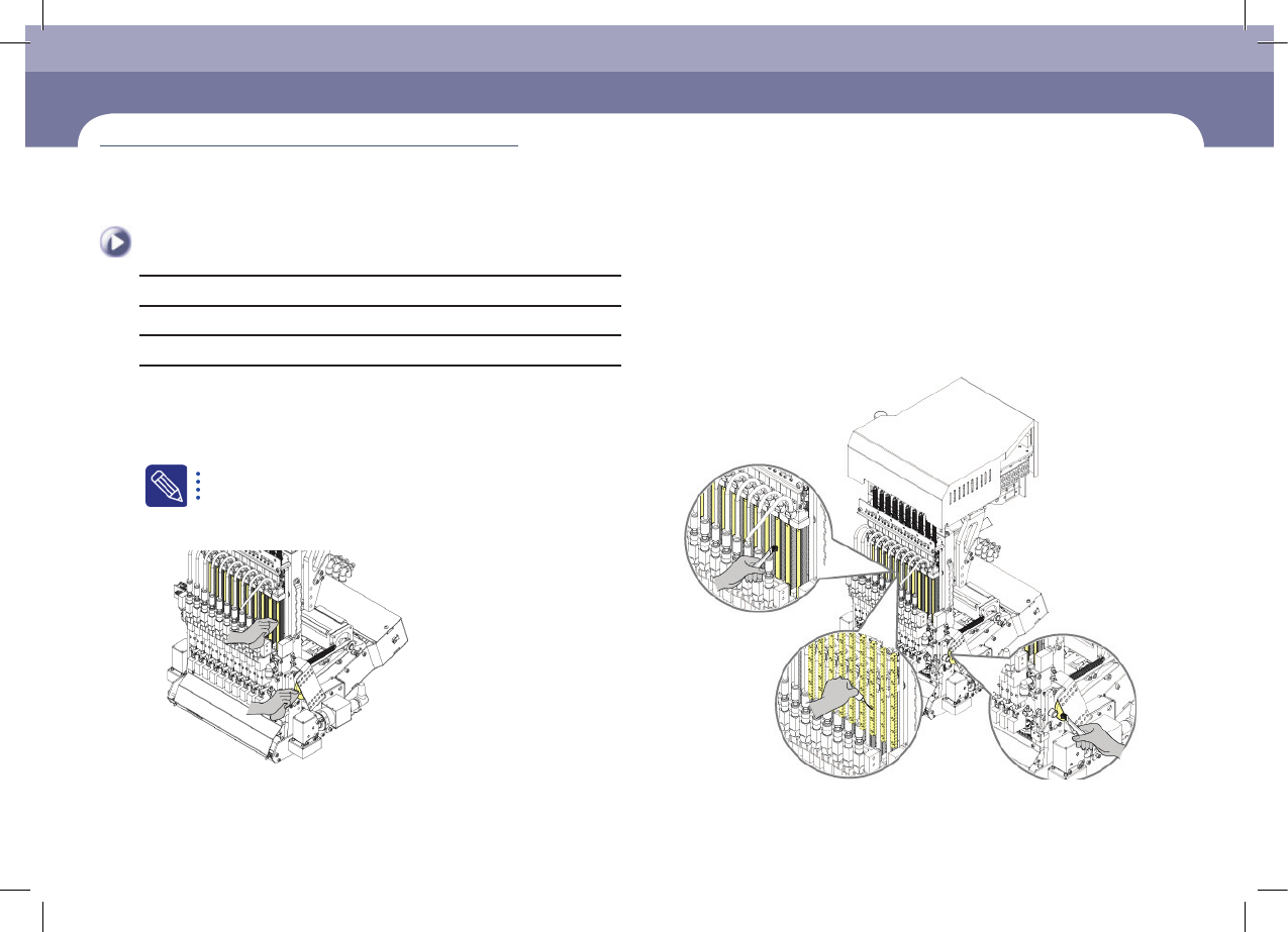 每月检验 Chap ter 5 Advanced Chip Shooter DE CAN S 2 Ma in ten a nc e Ha nd b oo k 5-1 1 Head Spindle, Mirror CAM清扫及注油 维护工 具 超细纤维布块、刷子、注射器、 GREASE GADUS S2 V220 - 2, GREASE AFF - 70 措施 Step 1. 详见 "4 . Front X - Frame 前面…
