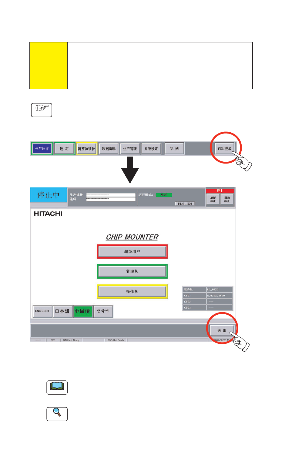 请务必从操作界面退出登录,显示“登录类型选择”界面,