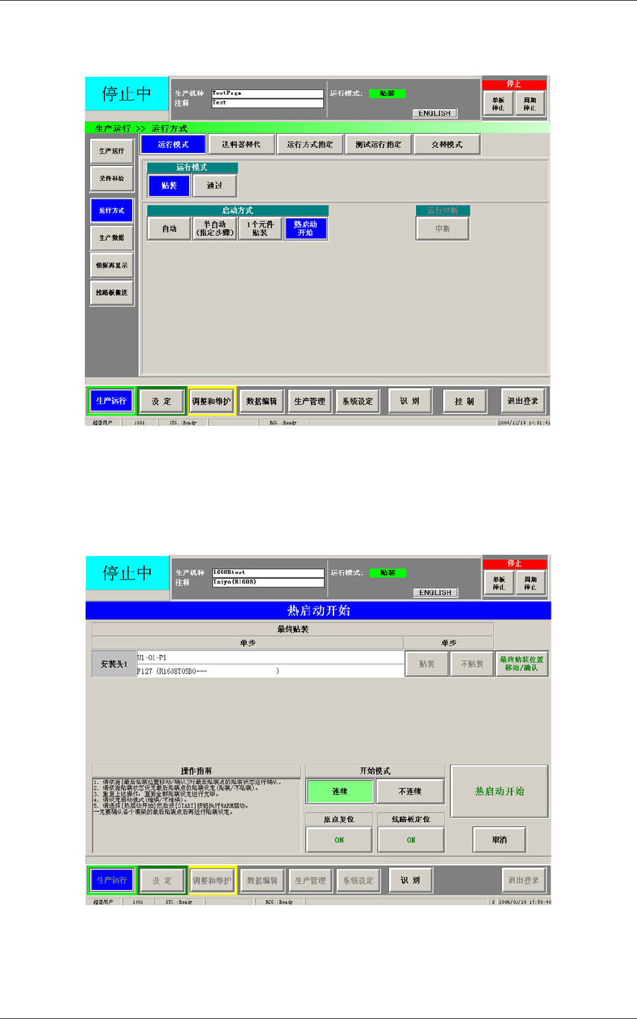 若有未设定贴装设定的安装头时,不能开始热启动。
