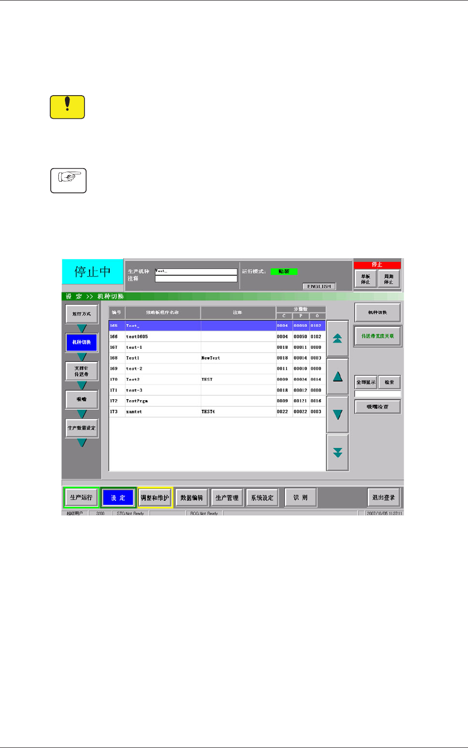 (2) 按 [ 机种切换 ] 按钮,在 10 秒钟内按下操作台的 [START]