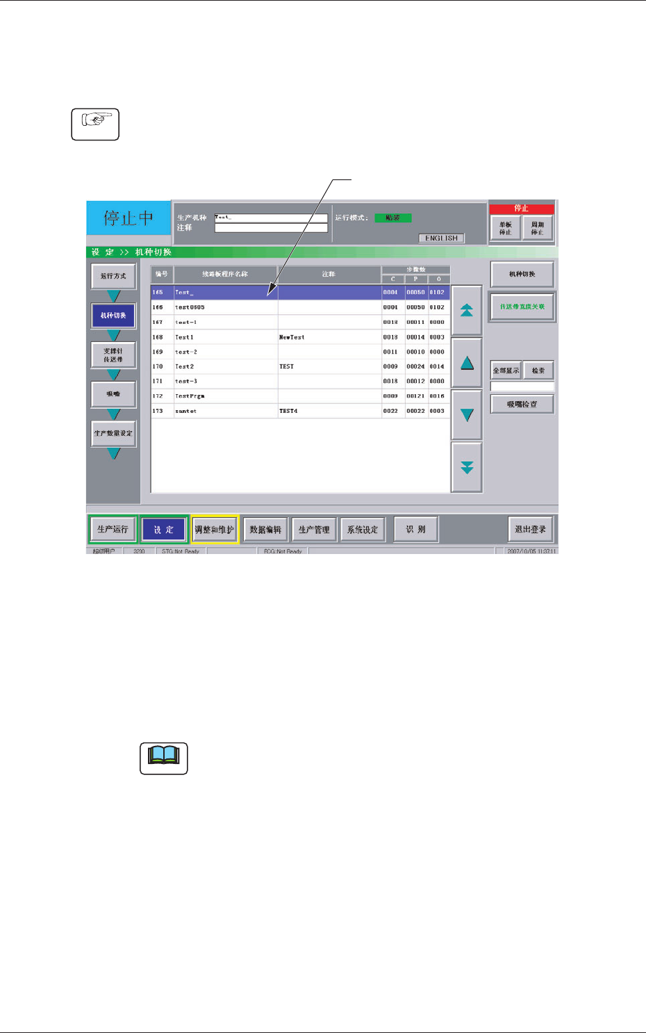 (1) 按“设定”菜单的 [ 机种切换 ] 按钮,显示“机种切换”界面。