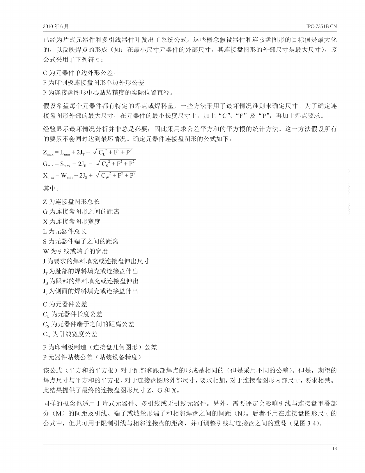 IP C -7 3 5 1 B CN 2 0 1 0 年 6 月 3 . 1 . 2 连 接 盘 公 差 连 接 盘 使 用 的 外 形 公 差 标 注 方 式 类 似 于 元 器 件 的 外 形 公 差 标 注 方 式 。 所 有 连 接 盘 公 差 都 是 要 确 保 设 计 的 连 接 盘 图 形 达 到 每 个 焊 盘 的 最 大 尺 寸 。 单 边 公 差 会 减 小 连 接 盘 尺 寸 ,导 致 形 成 焊 点 的 区 域 …
