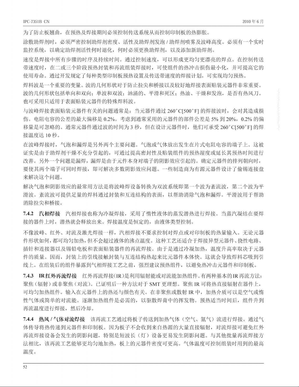 2 0 1 0 年 6 月 I P C - 7 3 5 1 B C N 使 用 氮 气 可 以 在 循 环 气 体 与 元 器 件 端 子 之 间 更 好 地 热 耦 合 。 除 了 改 善 润 湿 外 , 使 用 氮 气 扩 大 了 双 面 再 流 焊 接 的 工 艺 窗 口 , 较 低 的 活 性 焊 膏 助 焊 剂 也 可 以 使 用 。 7 . 4 . 5 激 光 再 流 焊 接 激 光 焊 接 是 对 其 他 焊 接 工 艺 …