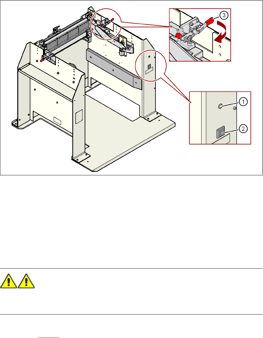 Fig. 5.16 - 1 Virar para baixo os manípulos do carro de componentes da Série X