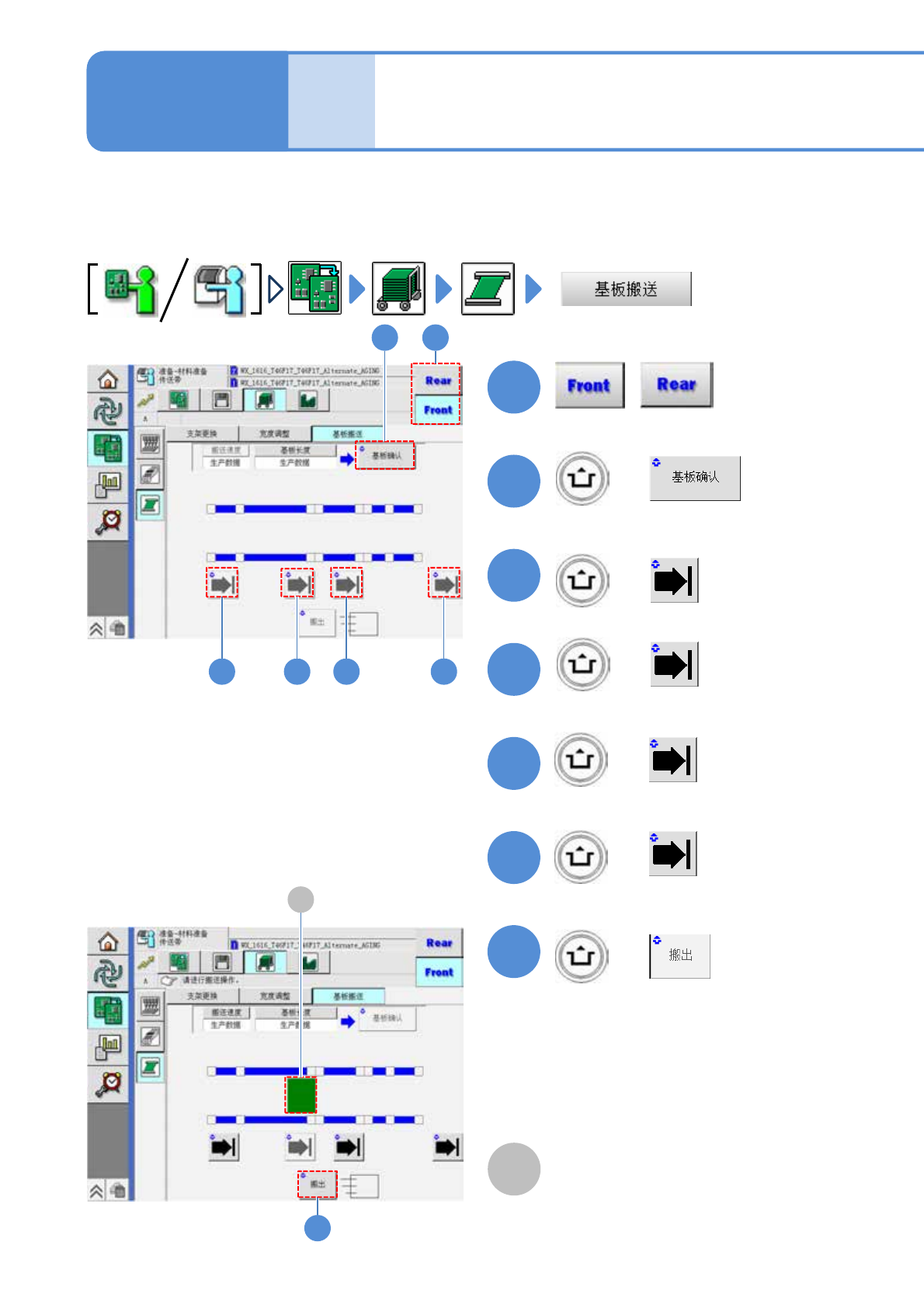 以到上游工序为止的确认已经结束、上游工序中有基板为前提,对基板的传送确认方法进行说明。