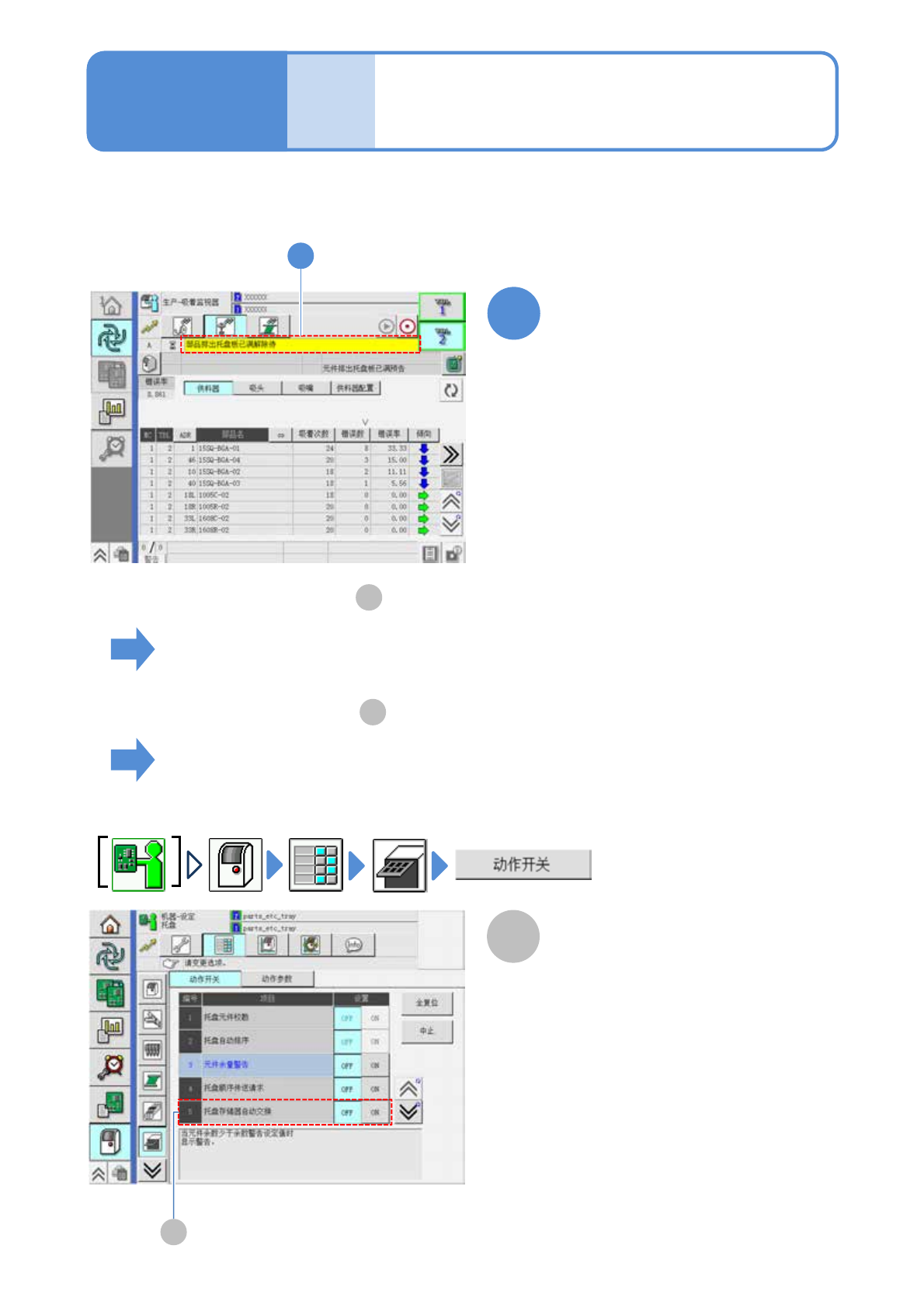 生产中排出托盘板装满,排出元件被吸嘴吸着时,会显示提示。
