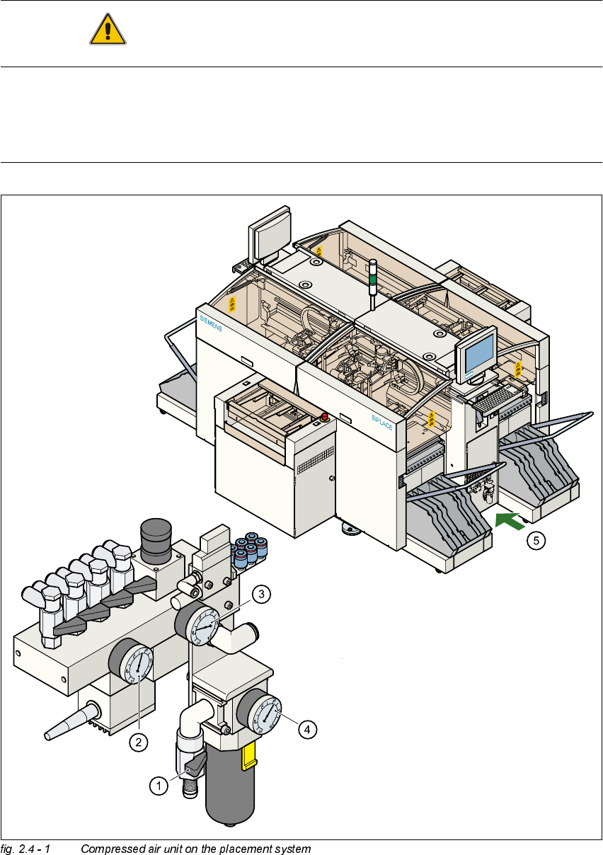2 Operational Safety Adjustment Instructions SIPLACE HS-50 2.4 Disabling of Air Supply / Discharging Pressure E dition 05/00 48 CAUTION When th e mach ine is s witch ed on, do not us e the stop v alve to i nterrup t the …