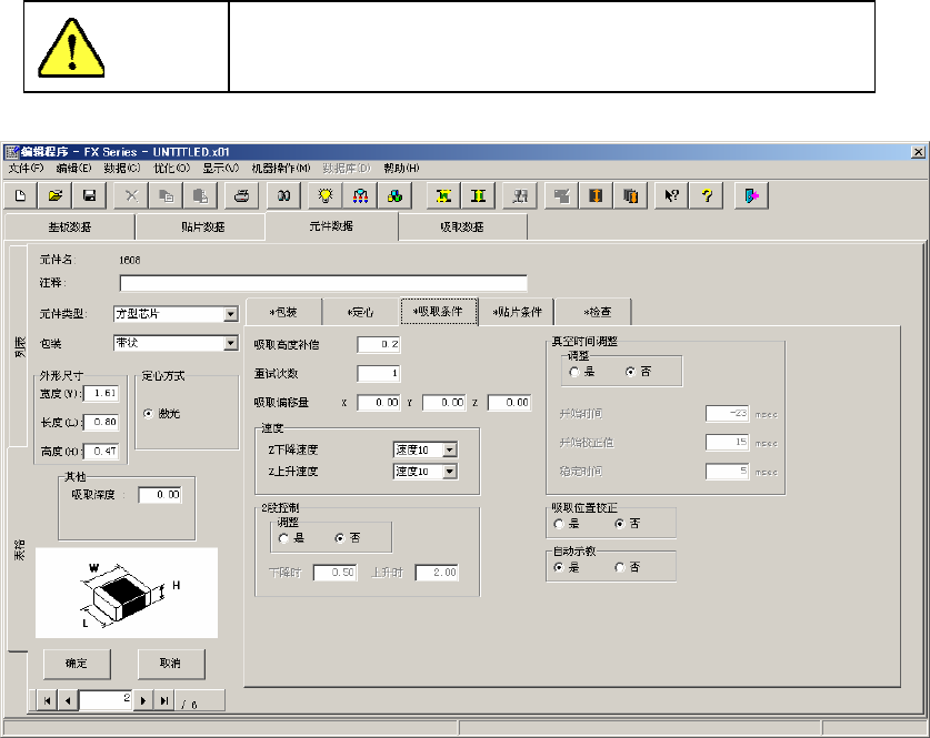 图 2-3-5-2-4-1 元件数据(吸取条件)