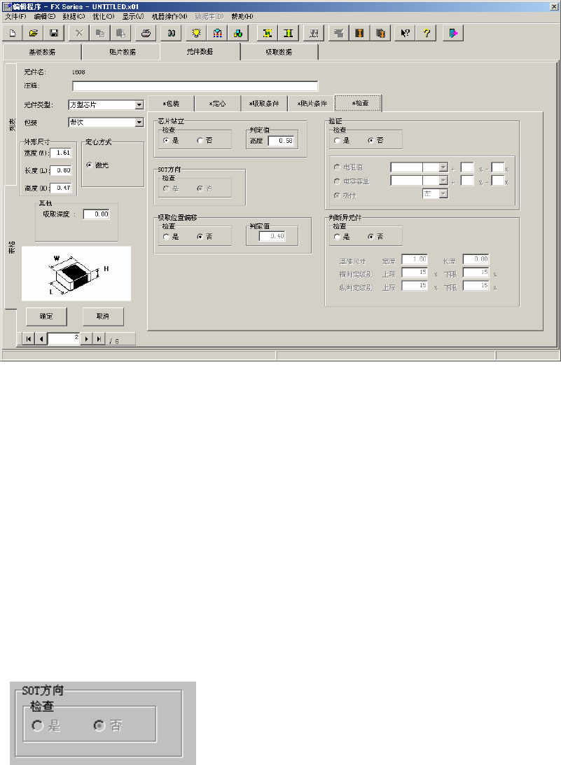 对“芯片站立”、“SOT方向”、“验证”、“判断异元件”进行设置。