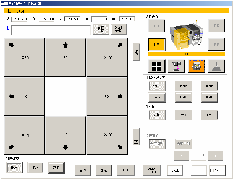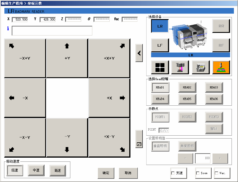 图 2-5-2-2-1-2 坐标示教画面(选择贴片头时的 XY 轴移动)