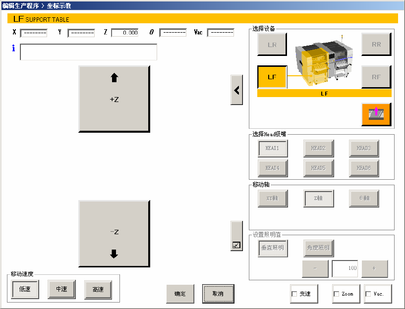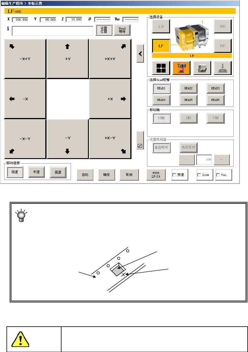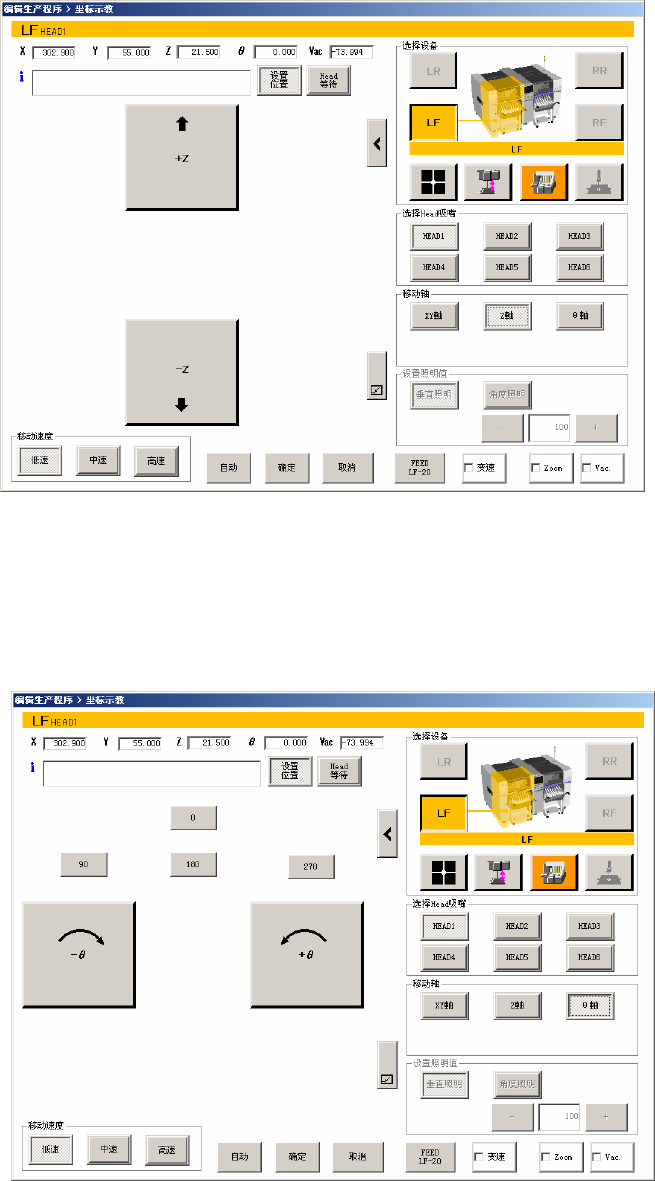 图 2-5-2-2-2-2 坐标示教画面(选择贴片头时的 Z 轴移动)