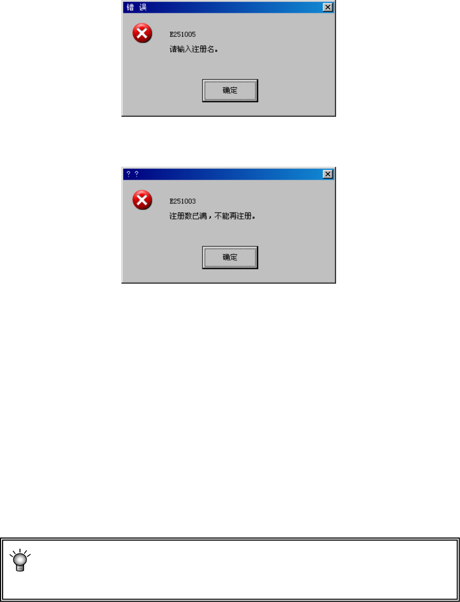 操作手册 II 2-145 图 2-5-2-3-1-10 错误 请输入注册名 图 2-5-2-3-1-11 错误 注册数已满不能再注册 (6) 关闭 …