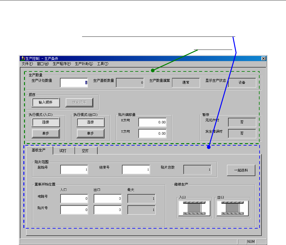在“基板生产”、“试打”、“空打”各种生产模式上,分别设定各自的生产条件。