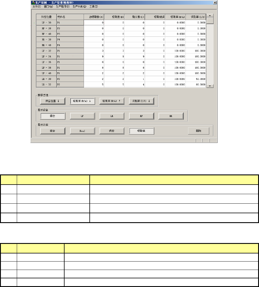 ◆ 生产暂停中:数据被自动更新,按图 3-3-1-5 的吸取率最差顺序显示。