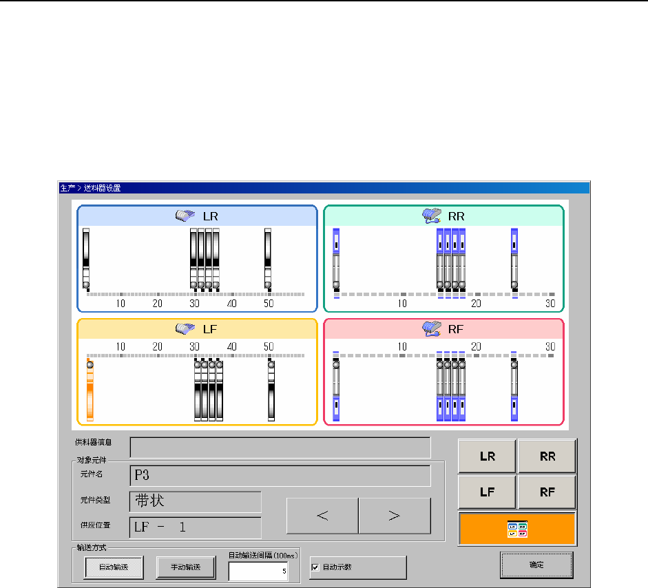 从所有送料器台架、左前 LF、左后 LR、右前 RF、右后 RR 中选择。