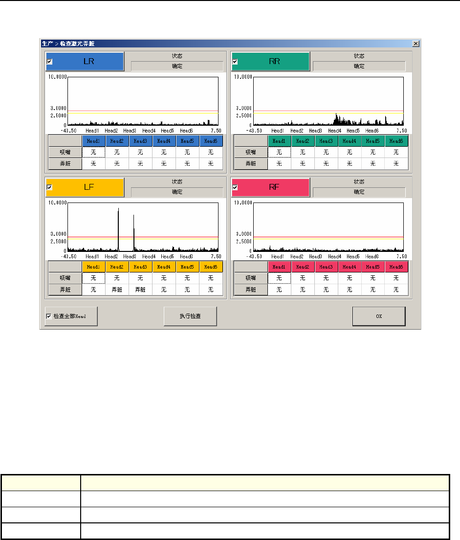 可以显示各贴片头的激光弄脏检查结果。