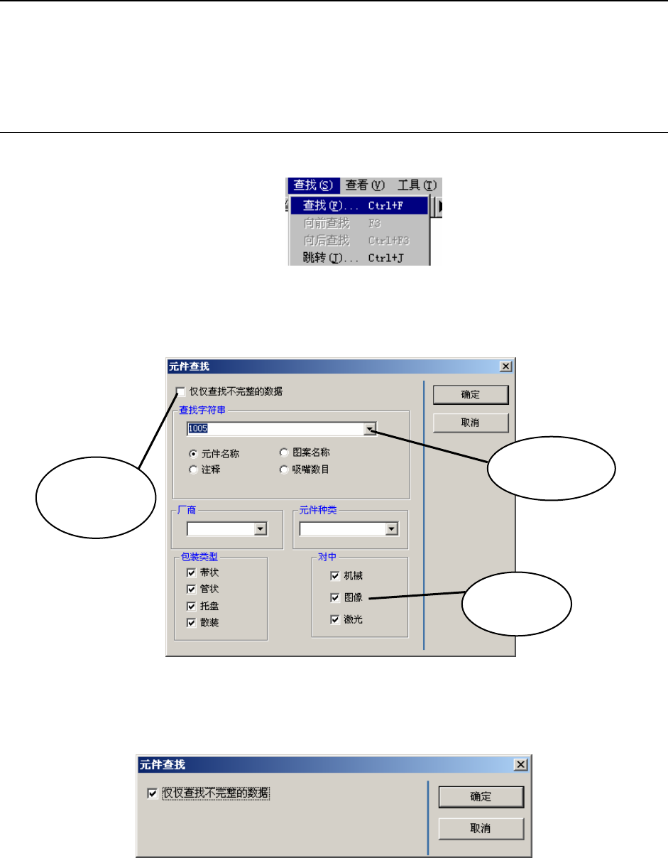 ④查找未完成的元件数据时,请单击“仅仅查找不完整的数据”。显示如下画面后,再单击“确