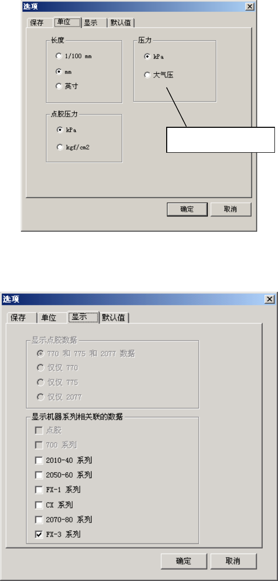 指定长度和压力的单位。在此装置中没有使用“点胶压力”。