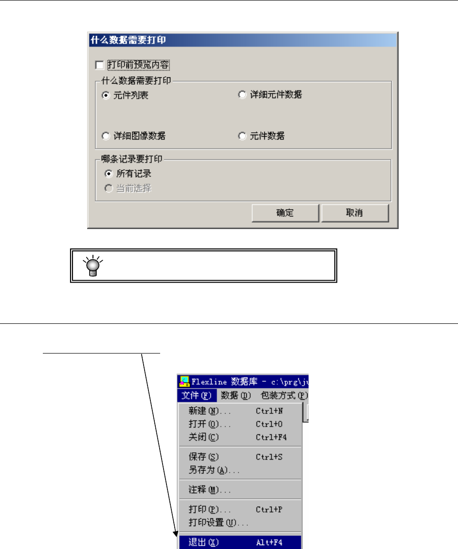 操作手册Ⅱ 4-27 4-1-1-7 打印 从菜单栏中单击“文件”-“打印”后,可显示如下画面。 设置打印条件,单击“确定”后,即可进行打印。 需要安装打印机驱动程序才能打印。 4-1-1-8 退出数据库 单击“文件”-“退出”。