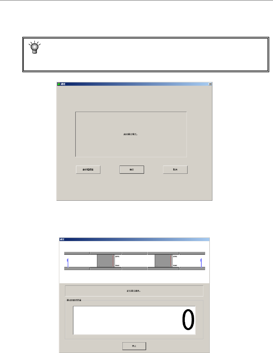 单击“确定”后,显示如下画面,传送传感器检测到有基板到来时,传送带开始转动。
