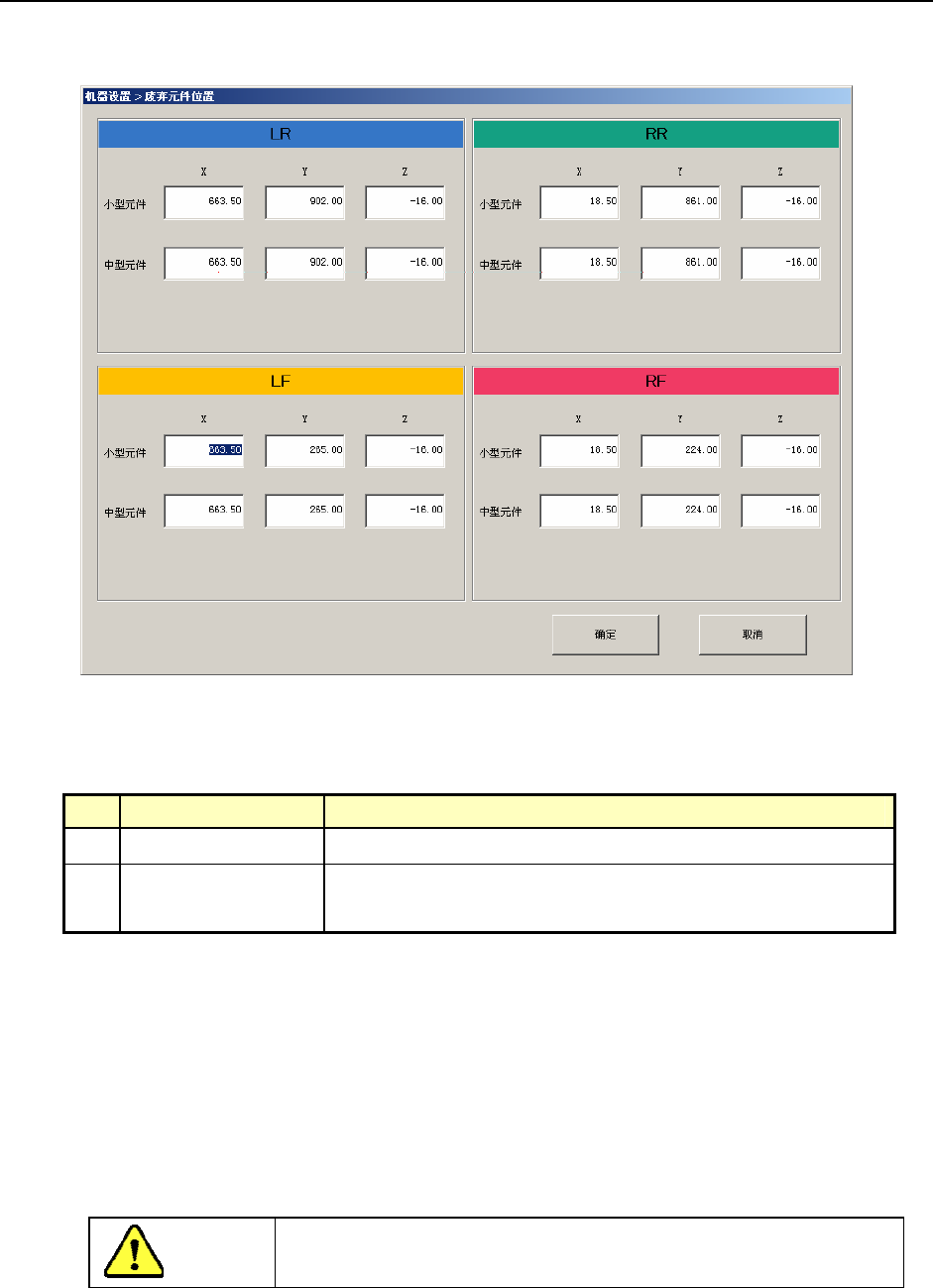 选择元件废弃位置后,将显示如下元件废弃位置设置画面。