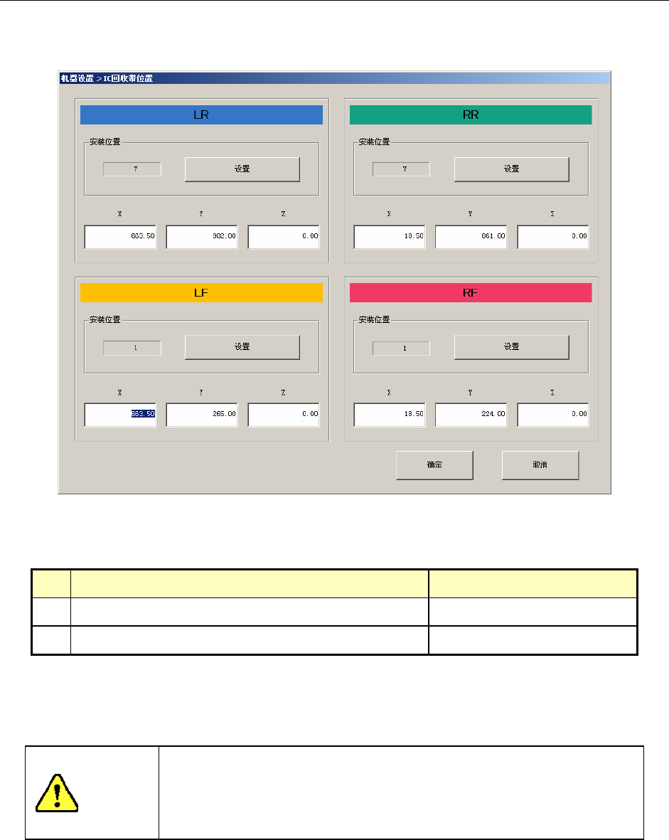 选择IC回收带位置后,会显示如下IC回收带位置设置画面。