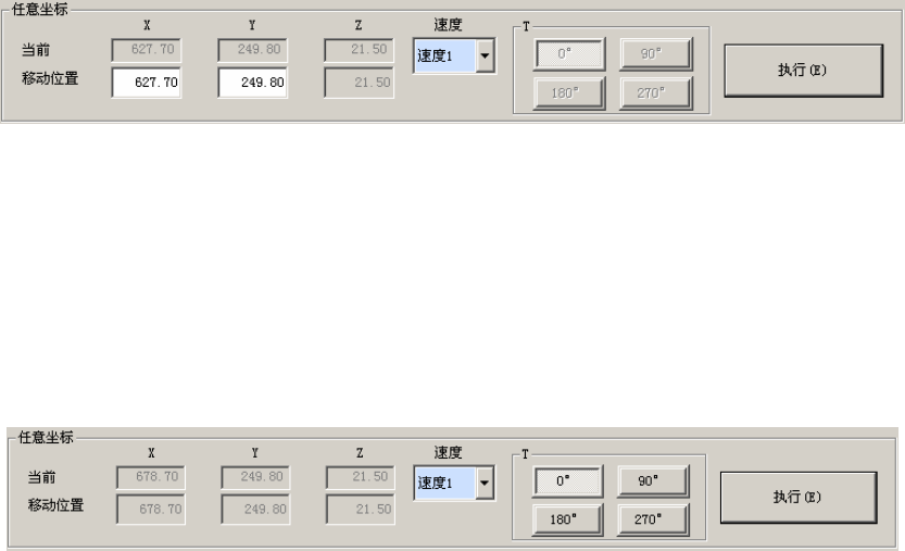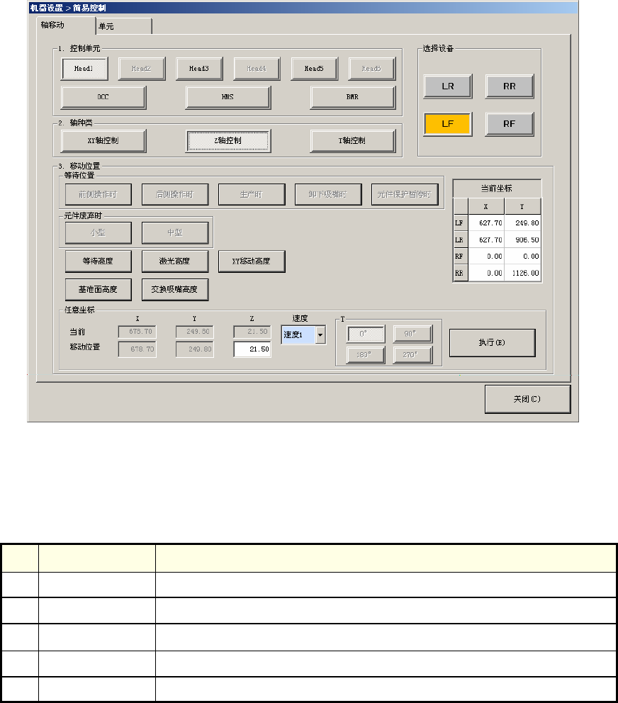 选择要控制的轴的种类“XY 轴控制”、“Z 轴控制”,按下“执行”按钮,即可把轴移至任意的指