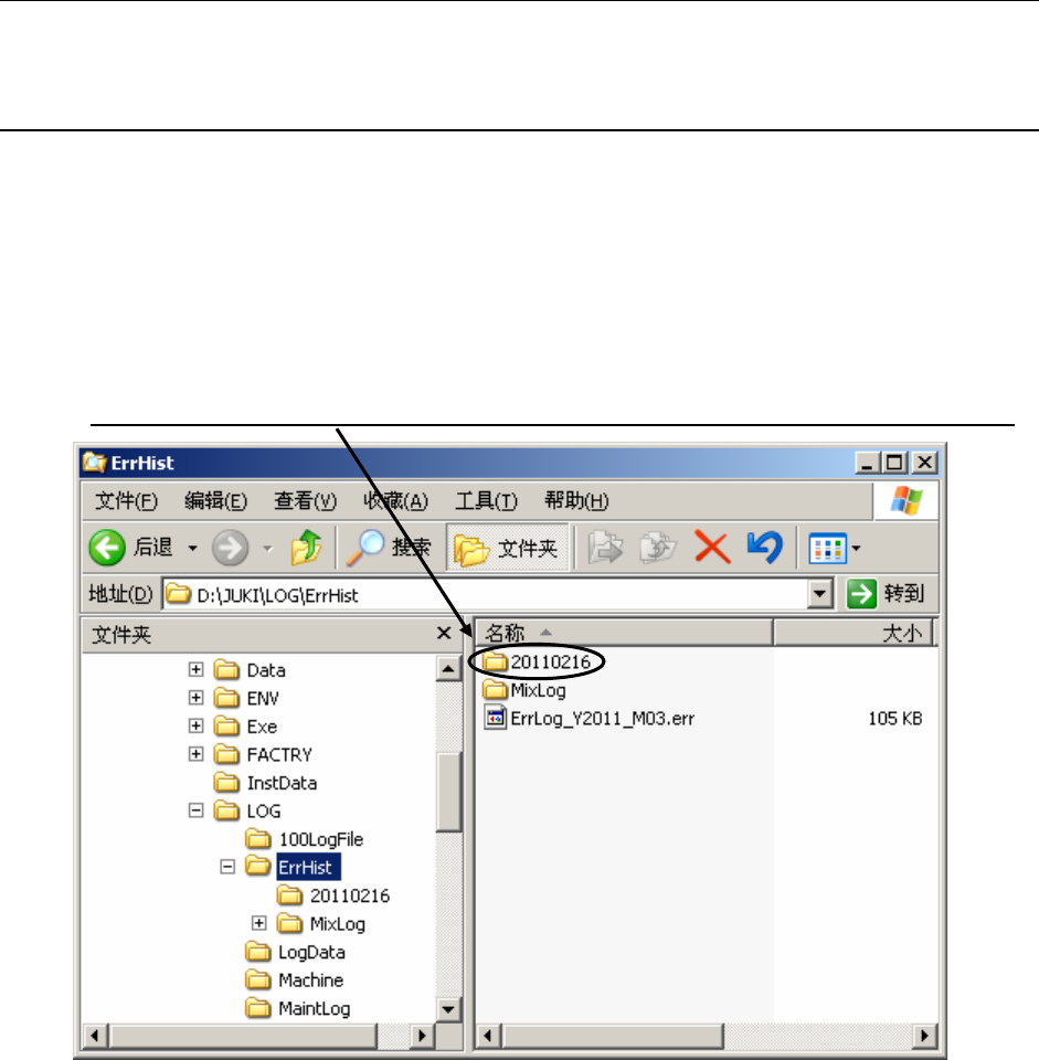 在“D:\juki\Log\ErrHist”里有以月为单位生成的文件夹,以“出错号码(日-时分秒).log”形式保
