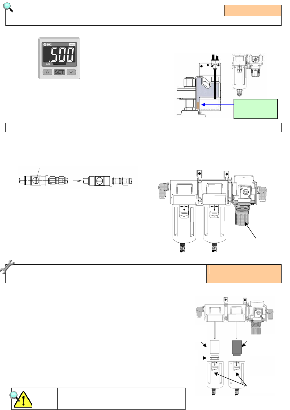 1) 在压力表上确认压力为 0.45Mpa ~ 0.55Mpa。 3) 若是排水管连接的瓶内存了水、