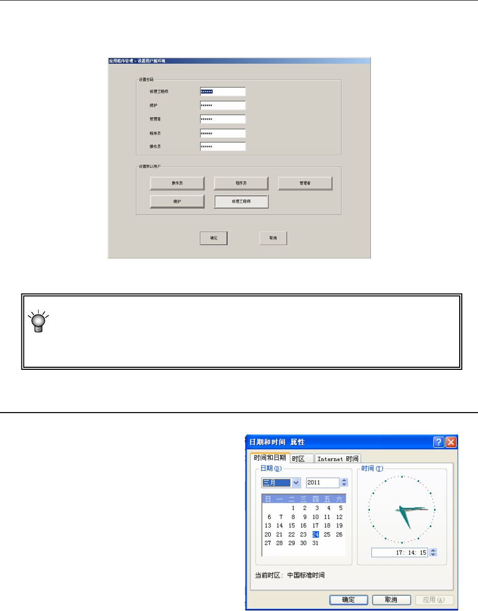 可修改用户级别变更时输入的密码,也可更改默认用户的设置(参见2-2-1-1 变更用户组的