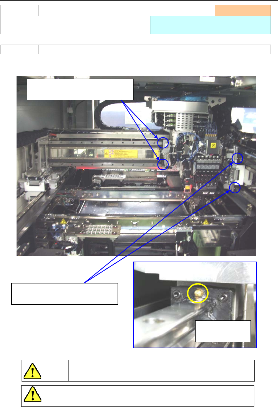 操作手册Ⅱ 5-36 1) スクリューシャフト 左右 1 本ずつ ①全面に黄油を塗布して下さい。 1) ガイドシャフト 左 2 本、右 3 本 ①全面に黄油を塗布して下さい。 1)线性导轨 左右各 2 根,共 4 根 请全面地涂抹润滑油。 注油项目 5-4-2 传送螺旋轴(轴) 实施频度 :每月 使用工具 :毛刷 使用润滑油 : 6459 润滑油 N 注油项目 5-4-3 传送导轴 实施频度 :每月 使用工具 :毛刷 使用润滑油 : 6…
