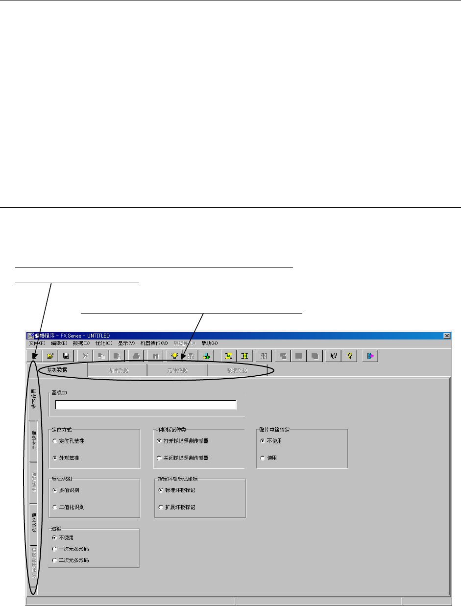 操作手册 I I 2-9 (1) 基板 ID 可以添加补充说明基板名的“注释”。 基板ID,最多可设置60个字符的字母、数字及符号。 ID设置应简单明了,便于在制作生产程序、生产中显示。 另外,也可省略输入。 (2) 定位方式 ◆ 定位孔基准: 当基板上有定位销插入孔时, 把基准销插入该孔中进行定位(定心)。 ◆ 外形基准: 采用机械固定基板外围的方式,决定基板位置。 不使用基板定位孔。 (3)标记识别 BOC标记的识别有2种方法可供选…