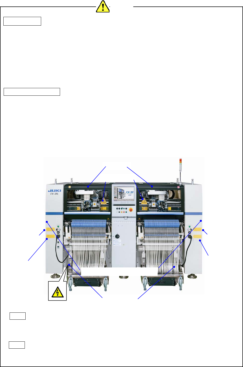 3. 贴在机器上的警告标识,请正确粘贴,使之醒目可见。若发生剥落或污损,请与本公司联系,换成
