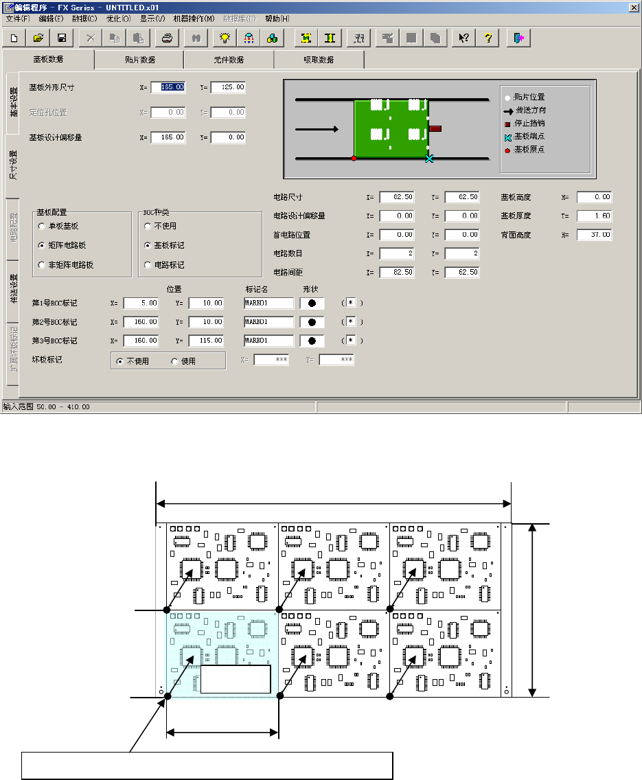 然后设置基板位置基准(原点)和电路原点(为贴装基准电路的原点),输入电路数和电路间