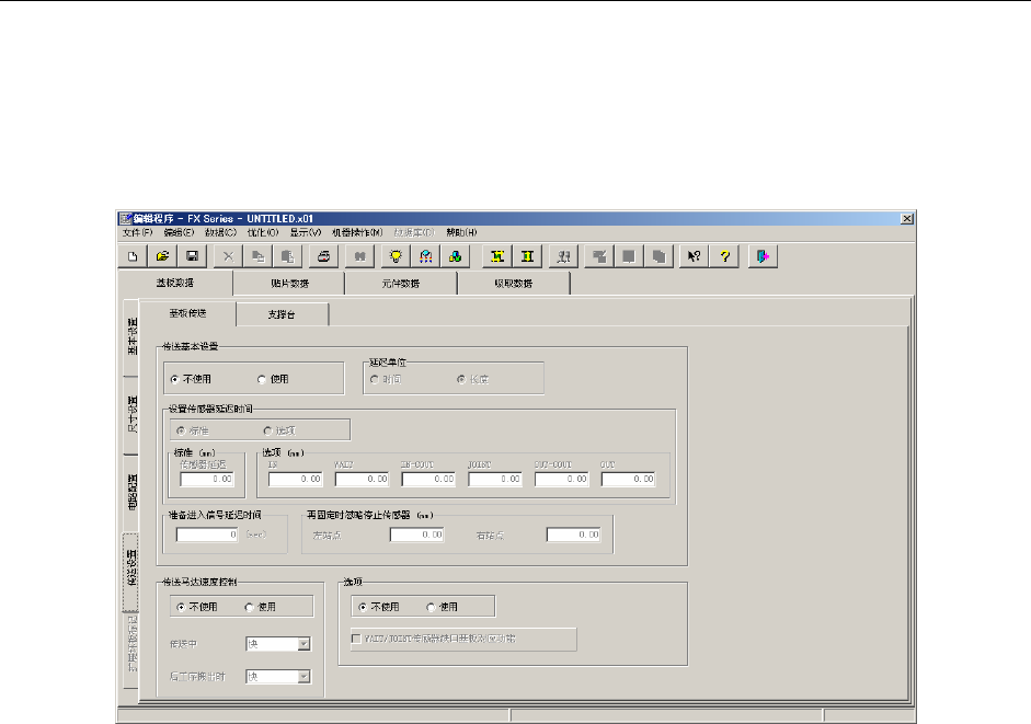 “传送设置”标签由“传送基本设置”、“传送马达速度控制”、“选项”等项目组成。