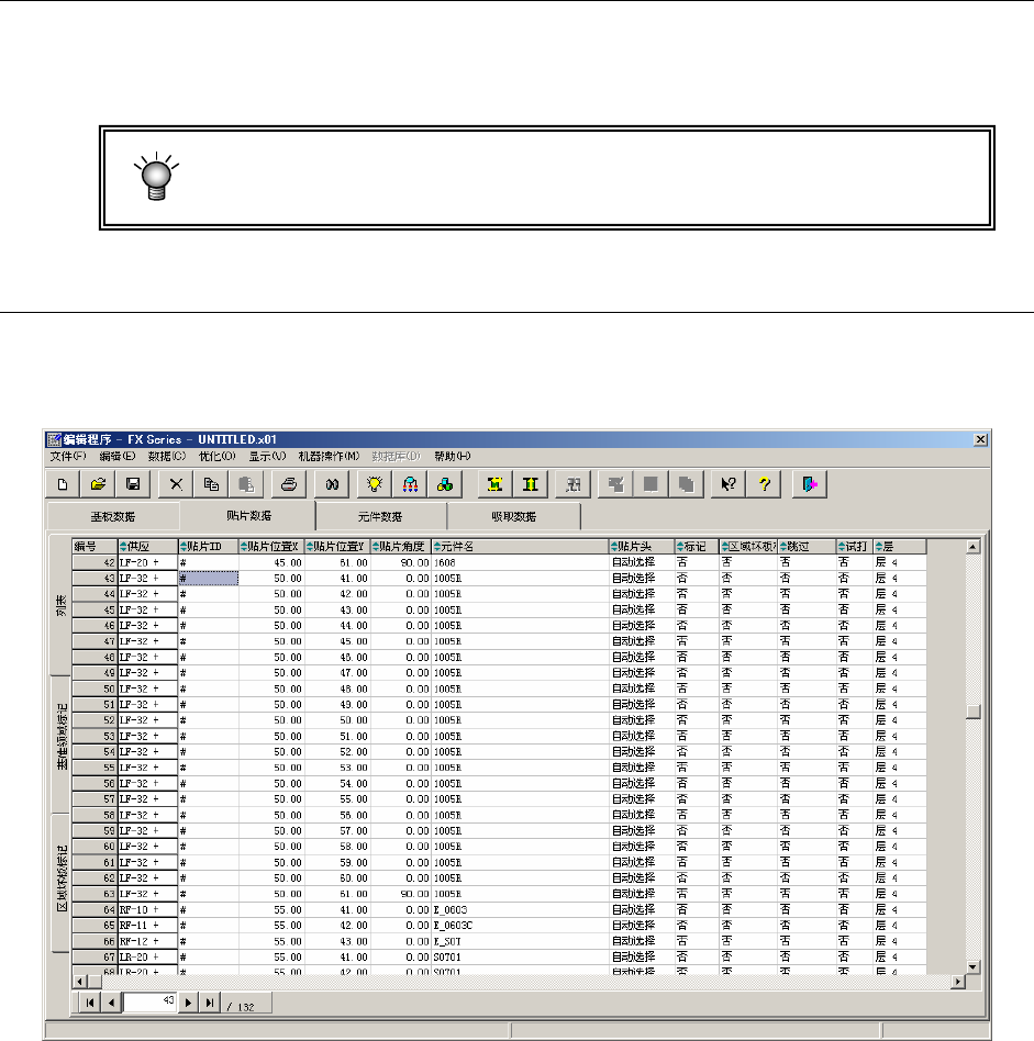 制作基板数据后,单击画面上方的“贴片数据”标签,可显示贴片数据制作画面(下图为制作