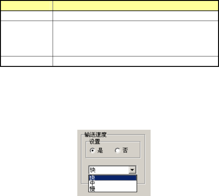 设置电动式供料器的输送速度。要变更输送速度时,设置选择“是”,从下拉列表中选择