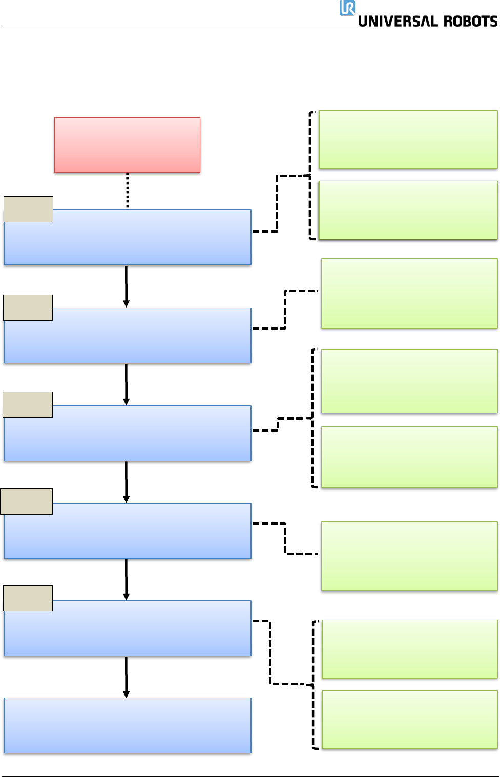 保留所有权利 147 Servicemanual_UR5 _en_3.2.6 5.3.7 完整的重启操 作 若要完全重启机器人系 统,请执行以下 5 个步骤: 若要完全重启,请执行 以 下操作 …… 完全断电 机器人和控制箱。 断开主电源 重新连接主电源 关闭控制箱电源 否 接通机器人和控制箱电 源 机械臂和控制箱现已完 全重启。 向控制器发送 关闭电源 的命令或 通过 I/O 输入命令 按下示教器上的电源按 钮,然后 按照屏幕上的说明…